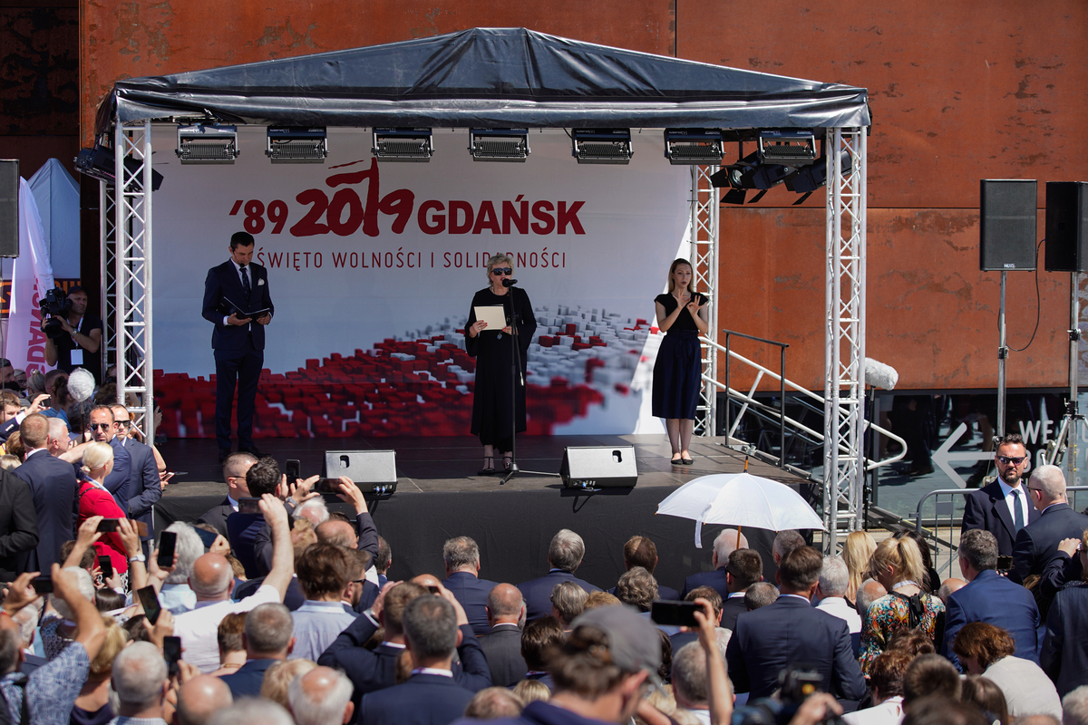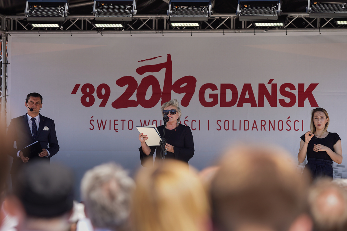 - Gdańskie obchody Święta Wolności i Solidarności były wielkim marzeniem Pawła Adamowicza - mówiła do zebranych prezydent Gdańska Aleksandra Dulkiewicz.- W przeddzień pogrzebu prezydenta Pawła Adamowicza spotkaliśmy się z samorządowcami, by spełnić marzenie Prezydenta. Czuję, że jego duch unosi się nad tym placem i uśmiecha się do nas, bo jesteśmy tu razem.