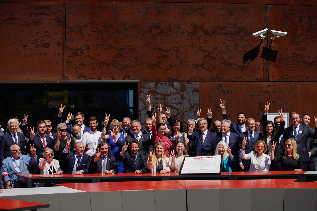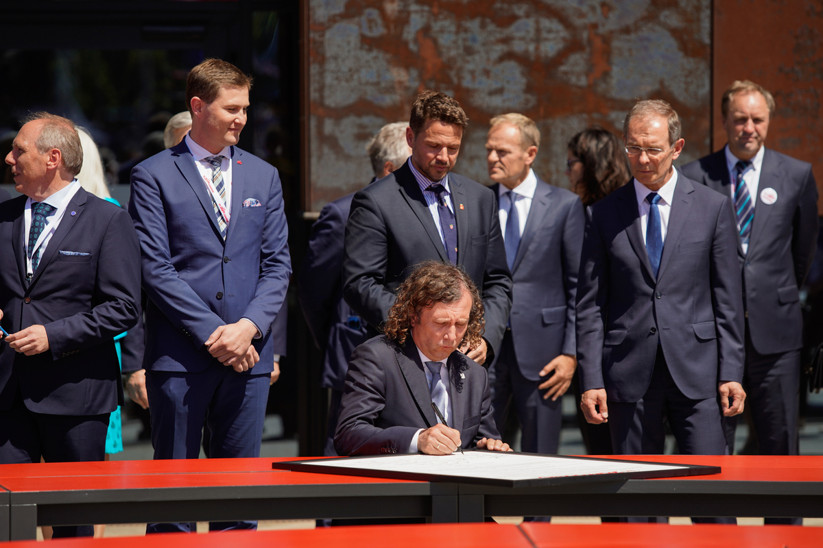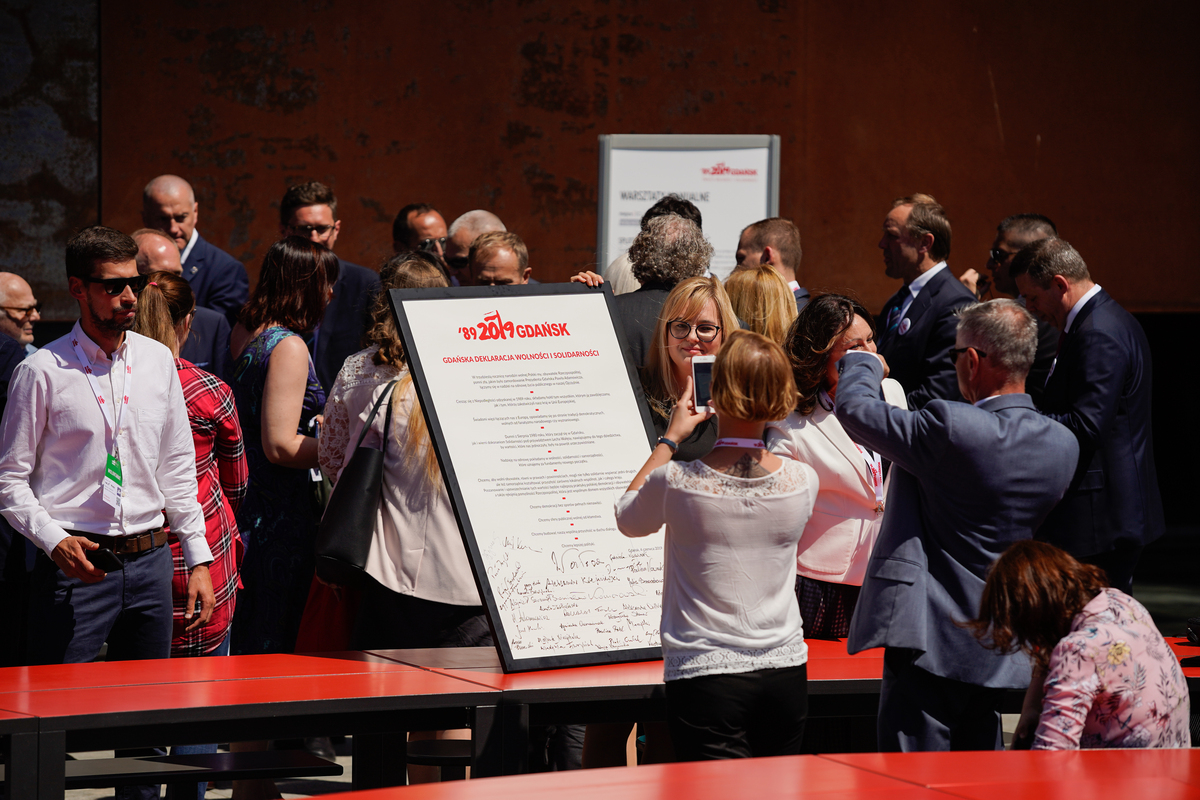 Tekst Deklaracji odczytała Krystyna Janda. Następnie uczestnicy uroczystości - m.in. Donald Tusk, Lech Wałęsa, Aleksander Kwaśniewski, Bronisław Komorowski, prezydenci polskich miast, w tym szef Związku Miast Polskich, Zygmunt Frankiewicz, a także wszystkie chętne osoby obecne na uroczystości - złożyły swoje podpisy na dokumencie.
