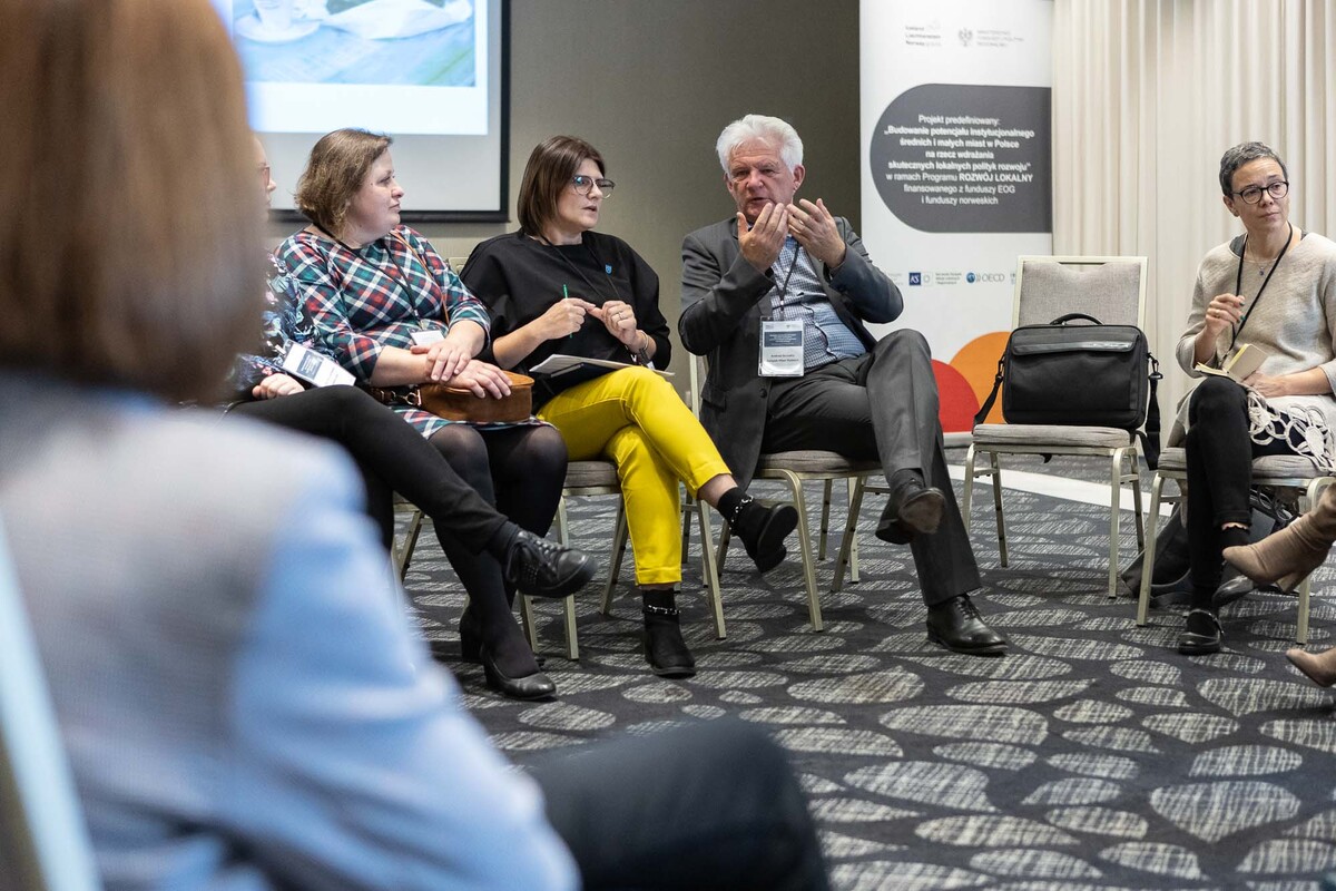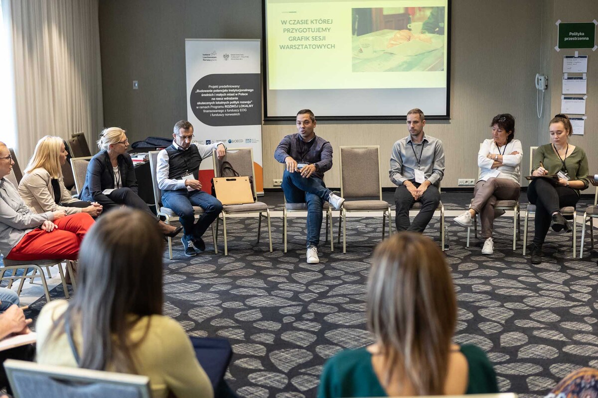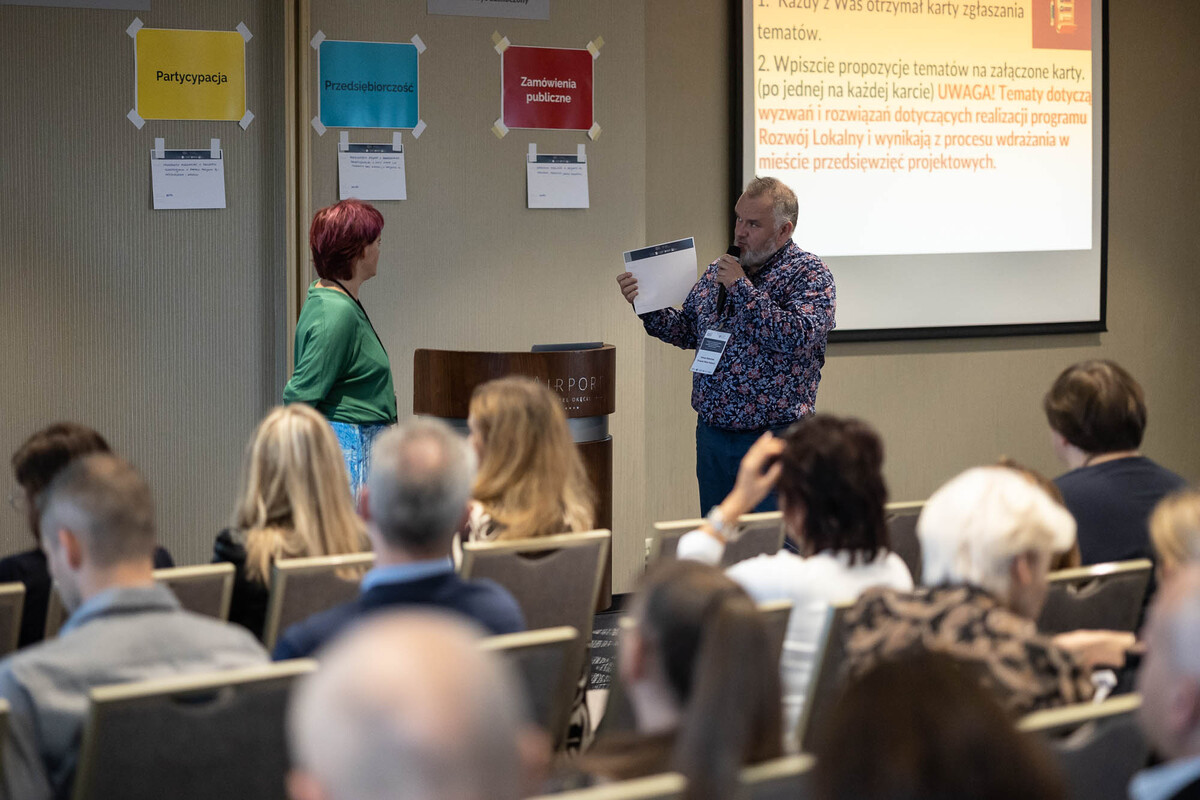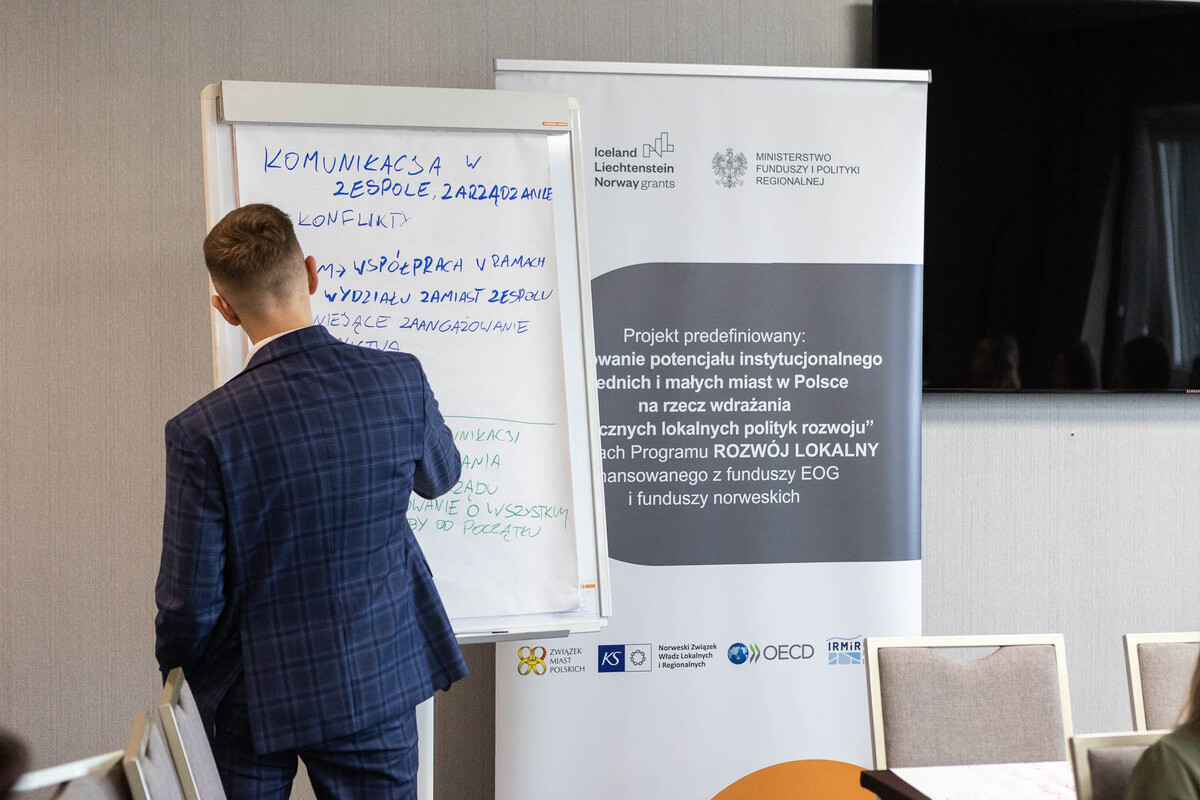 Witając zebranych Maciej Aulak, dyrektor Departamentu Programów Pomocowych w Ministerstwie Funduszy i Polityki Regionalnej, mówił, że warsztaty mają na celu wymianę doświadczeń w mniej formalnej formule, aby realizacja projektów była lepsza i łatwiejsza. Poinformował zebranych, że z donatorami udało się wynegocjować większy margines elastyczności, np. w podejściu do niektórych parametrów, ale - mimo wniosków miast - termin kwalifikowalności projektów pozostaje bez zmian, czyli program musi się zakończyć do kwietnia 2024 roku. Tomasz Potkański, zastępca dyrektora Biura ZMP oraz kierownik projektu predefiniowanego zachęcał zebranych do dialogu z przedstawicielami Ministerstwa i zgłaszania swoich wątpliwości. Jego zdaniem warsztaty tworzą doskonałą platformę wymiany informacji nie tylko z MFiPR, lecz także między zespołami miejskimi, które mogą korzystać nawzajem ze swoich doświadczeń dotyczących wdrażania Programów Rozwoju Lokalnego i Programów Rozwoju Instytucjonalnego.