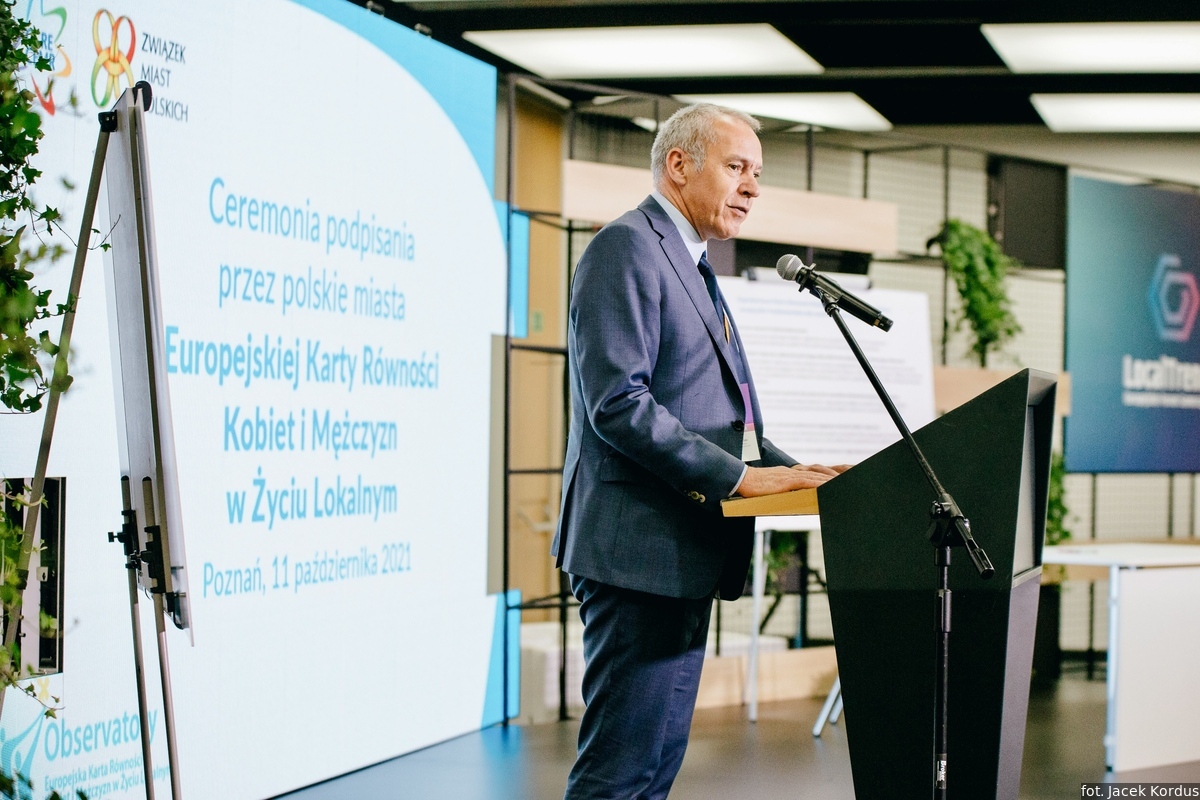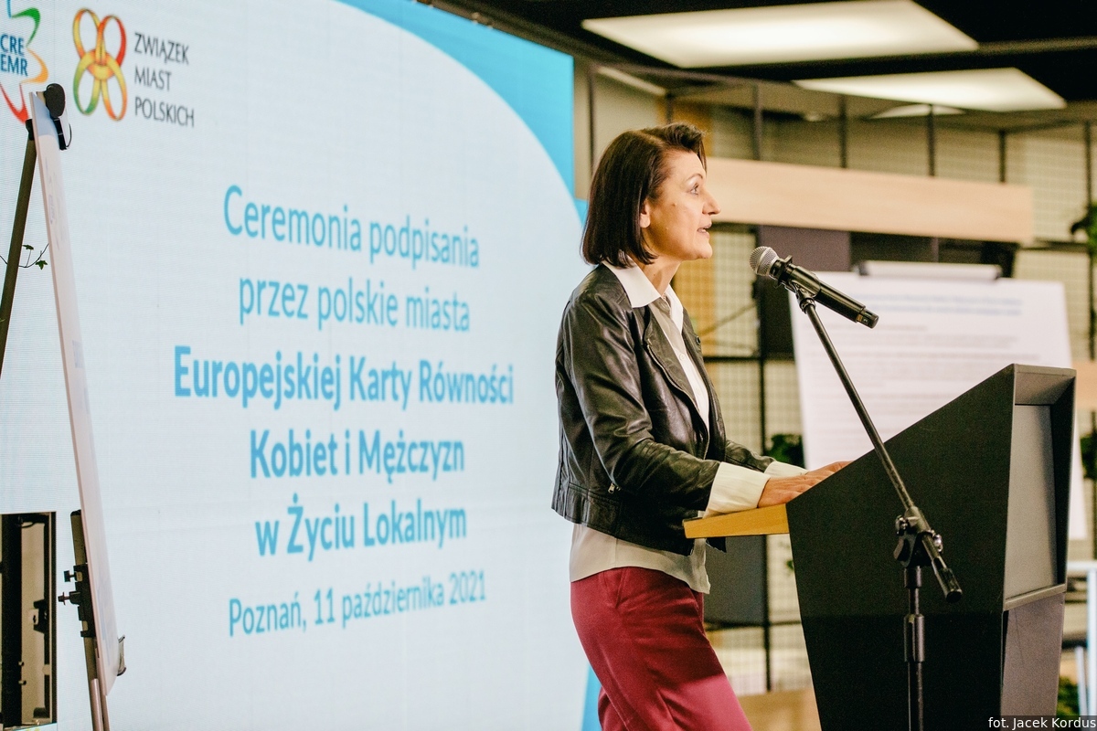 Ceremonię podpisania Europejskiej Karty Równości Kobiet i Mężczyzn w Życiu Lokalnym zorganizowały 11 października br. Rada Gmin i Regionów Europy CEMR oraz Związek Miast Polskich. Była to odpowiedź na pojawiające się w ostatnim czasie coraz liczniejsze sygnały z miast członkowskich o chęci przyjęcia przez nie Karty. Owo rosnące zainteresowanie polskich samorządów obserwuje także od 2020 roku Komisja Stała ds. Równouprawnienia, działająca w ramach Rady Gmin i Regionów Europy (CEMR). Jej członkami są przedstawicielki i przedstawiciele władz lokalnych i regionalnych z całej Europy. Jednocześnie do Komisji docierały informacje o problemach administracyjnych, z jakimi borykają się niektóre polskie samorządy, np. Poznań, w związku z przyjęciem Karty.