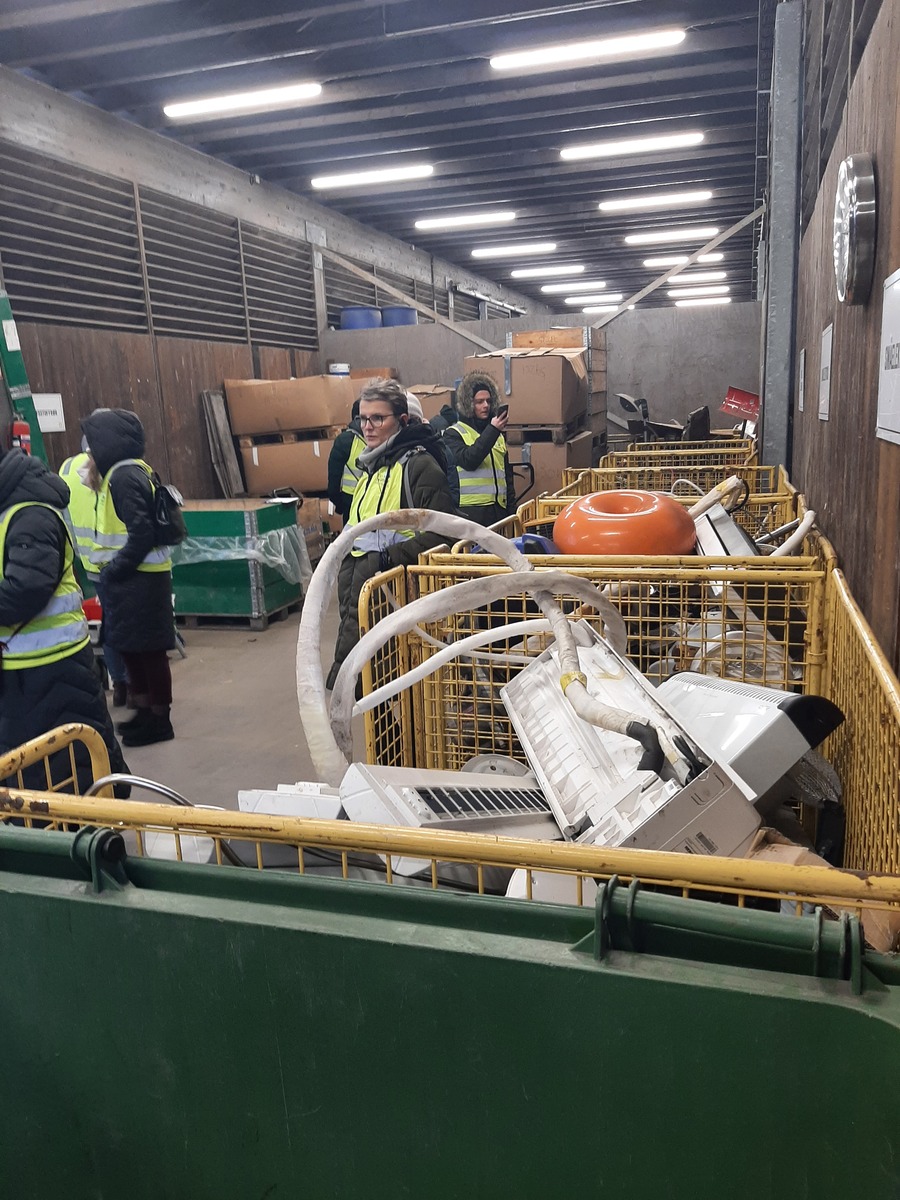 Bardzo ciekawa była wizyta w centrum składowania i ponownego wykorzystania materiałów budowlanych OMBYGG (https://www.ombygg.no/). Okna, umywalki, deski, kafelki, płyty frontowe budynków, ale także części wyposażenia kuchni przemysłowych, które zostały kupione w nadmiarze lub zdemontowane w dobrym stanie, mają szanse znaleźć tutaj nowego właściciela. Zachętą jest niższa cena oraz dobra jakość produktów i zaufanie jakie Norwegowie mają do drugiego człowieka – tylko nieliczne z materiałów mają certyfikat, atest, gwarancję z czasu, kiedy zostały kupione przez pierwszego właściciela. Centrum jest prowadzone przez gminę Oslo, a główny cel, jaki mu przyświeca to ponowne wykorzystanie produktów, które się do tego nadają. Osoby, które oddają do centrum materiały, nie mają z tego zysku, a jedynie poczucie, że robią coś dobrego dla środowiska i nie muszą płacić za utylizację niechcianych materiałów.